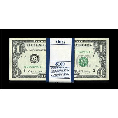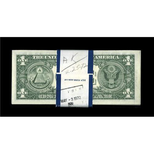 <B>Fr. 1905-C* $1 1969B Federal Reserve Notes. Original Pack of 100. Gem Crisp Uncirculated.</B></I><BR>Wide margins and nice centering are found on the Stars in this pack. They are held by a dark blue BEP band with a date stamp of May 3, 1972. Other teller writings are noted on the band, too.<BR><BR><b>Shipping:</b> Coins & Currency (<a target="_blank" href="http://www.heritageauctions.com/common/shipping.php">view shipping information</a>)