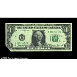 Fr. 1907-D $1 1969D Federal Reserve Note. Very Fine-Extremely Fine.There is a thrice folded foldover in the lower left corner. Important notice: We expect to be auctioning lots at the rate of 200-250 per hour. Sometimes eBay Premier live bid software cannot keep up with that pace, so we strongly recommend that you place a realistic proxy bid now as insurance to avoid disappointment. Also please note that all Heritage/CAA lots purchased through eBay Premier carry a 20% Buyer's Premium. Please make sure you read the Terms and Conditions.