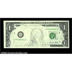 Fr. 1907-G $1 1969D Federal Reserve Note. Gem Crisp Uncirculated. Inadequate inking or a board break has caused a distinctive ghost image on this interesting note. Important notice: We expect to be auctioning lots at the rate of 200-250 per hour. Sometimes eBay Premier live bid software cannot keep up with that pace, so we strongly recommend that you place a realistic proxy bid now as insurance to avoid disappointment. Also please note that all Heritage/CAA lots purchased through eBay Premier carry a 20% Buyer's Premium. Please make sure you read the Terms and Conditions.