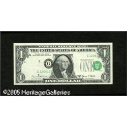 <B>Fr. 1907-G $1 1969D Federal Reserve Note. Gem New.</B></I><BR>The third printing is shifted boldly to the right with the district seal just entering the portrait area. Lot:15234