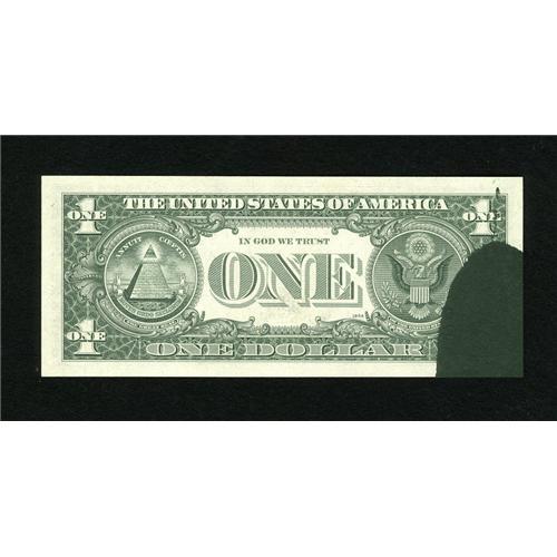 <B>Fr. 1908-B $1 1974 Federal Reserve Note. Gem Crisp Uncirculated.</B></I><BR>A large oval, green ink smear affects the back of this earlier $1 FRN.<BR><BR><b>Shipping:</b> Coins & Currency (<a target="_blank" href="http://www.heritageauctions.com/common/shipping.php">view shipping information</a>)