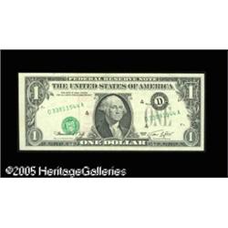 <B>Fr. 1908-D $1 1974 Federal Reserve Note. Extremely Fine.</B></I> Here is a great overprint error that includes a serial number mismatch of 33811544/33891544. The overprint runs southwest to northeast giving this $1 a dynamic look. A light teller stamp is visible on the face. Lot:15429