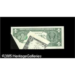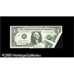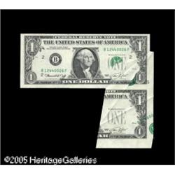 <B>Fr. 1908-D $1 1974 Federal Reserve Note. Gem New.</B></I><BR>A massive triple fold caused printing and cutting errors that are more easily exhibited by the photographs than by our descriptions. Lot:15272