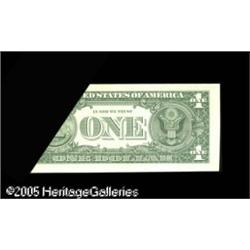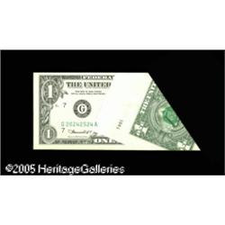 <B>Fr. 1908-G $1 1974 Federal Reserve Note. Choice New.</B></I><BR>This foldover and cutting error has received portions of the third printing on the back of the note. It's from the top edge of the sheet and consequently has over one inch of blank selvage. Lot:15273