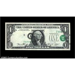 Fr. 1908-I $1 1974 Federal Reserve Note. About Uncirculated. A truly skewed third printing, winding up in the right margin as well as across the portrait. Important notice: We expect to be auctioning lots at the rate of 200-250 per hour. Sometimes eBay Premier live bid software cannot keep up with that pace, so we strongly recommend that you place a realistic proxy bid now as insurance to avoid disappointment. Also please note that all Heritage/CAA lots purchased through eBay Premier carry a 20% Buyer's Premium. Please make sure you read the Terms and Conditions.