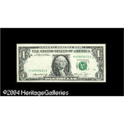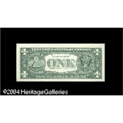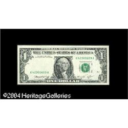 Fr. 1908-K $1 1974 Federal Reserve Notes. Gem Crisp U <B>Fr. 1908-K $1 1974 Federal Reserve Notes. Gem Crisp Uncirculated.</B></I> A run of three consecutive pieces from the Dallas district, all of which are missing the black district seal and numbers from the third printing, making for an excellent display item. 3 notes <BR><BR><B>Important notice:</B> Heritage usually auctions material at the rate of 200-250 lots per hour. On some occasions eBay Live bid software or the Internet may not be able to keep up with the pace of the auction. We recommend placing a realistic absentee bid now as insurance to avoid disappointment. Occasionally the auctioneer may eliminate or reject an eBay Live bid, and the auctioneer may also reopen a lot after the close of the eBay live bidding (usually because we missed an audience bid), and may reject your bid even if it shows you as the winning bidder. By bidding via eBay Live, you agree that Heritage may award the lot to another bidder at its sole discretion under the circumstances described above or any other reasonable circumstances. Since eBay bids are not shown to us until we open the lot on the floor, we treat those bids just like floor bids. In most cases the floor responds before the eBay bid is presented to us, due to Internet lag time, so for consistency we have made it a policy that floor bids are always considered first over tie eBay live bids. Also please note that all Heritage lots purchased through eBay Live carry a 20% Buyer's Premium. Please make sure you read the Terms and Conditions before you bid. This lot is being auctioned in conjunction with a live floor auction by Heritage Galleries & Auctioneers. All final auction and invoice information will be supplied by Heritage Galleries & Auctioneers, and all other information should be considered preliminary. Lot:16076