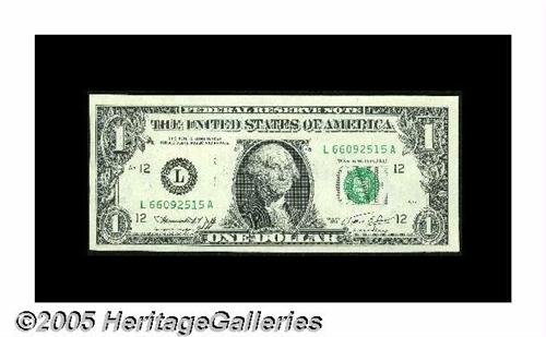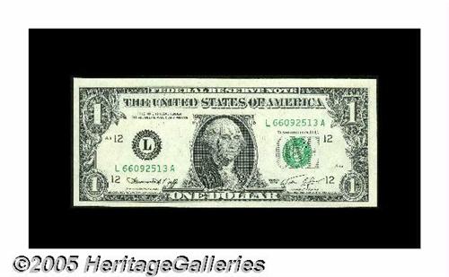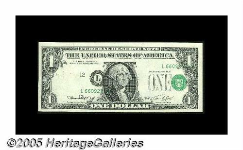 <B>Fr. 1908-L $1 1974 Federal Reserve Notes. Three Consecutive Examples. Gem Crisp Uncirculated.</B></I> The third printing is shifted to the right and into the portrait on this error note that is accompanied by its two "bookend" companions.<BR>