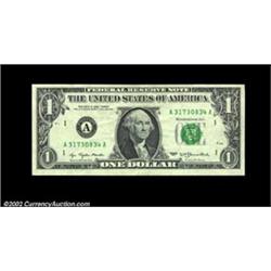 Fr. 1909-A $1 1977 Federal Reserve Note. Choice About Uncirculated.A bit too much handling is present on this blank reverse note for it to grade New. Important notice: We expect to be auctioning lots at the rate of 200-250 per hour. Sometimes eBay Premier live bid software cannot keep up with that pace, so we strongly recommend that you place a realistic proxy bid now as insurance to avoid disappointment. Also please note that all Heritage/CAA lots purchased through eBay Premier carry a 20% Buyer's Premium. Please make sure you read the Terms and Conditions.