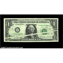 Fr. 1909-C $1 1977 Federal Reserve Note. Very Fine.A near-horizontal gutter fold diagonally crosses this note. Important notice: We expect to be auctioning lots at the rate of 200-250 per hour. Sometimes eBay Premier live bid software cannot keep up with that pace, so we strongly recommend that you place a realistic proxy bid now as insurance to avoid disappointment. Also please note that all Heritage/CAA lots purchased through eBay Premier carry a 20% Buyer's Premium. Please make sure you read the Terms and Conditions.