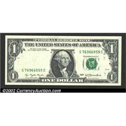 Fr. 1909-G $1 1977 Federal Reserve Note. Gem Crisp Uncirculated. The black of the third printing has disappeared on the left.