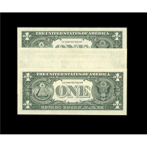 <B>Fr. 1909-G $1 1977 Federal Reserve Notes. Gem Crisp Uncirculated.</B></I><BR>Three consecutive notes with the 100% blank back note residing between the two bookend normal notes.<BR><BR><b>Shipping:</b> Coin/Currency (<a target="_blank" href="http://www.heritageauctions.com/common/shipping.php">view shipping information</a>)