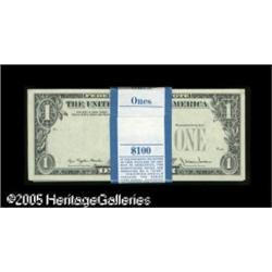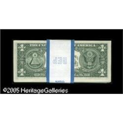 <B>Fr. 1910-A $1 1977A Federal Reserve Notes. Original Pack of 100. Choice Crisp Uncirculated.</B></I><BR>The twenty-first note of this pack carries the third printing on its back. It is extraordinary for errors to remain with their original packs.<BR> 100 notes Lot:15152