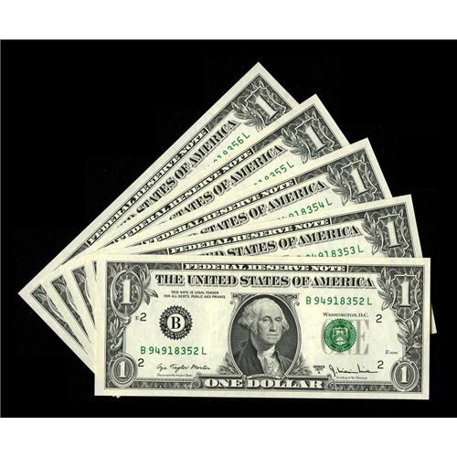 Fr. 1910-B $1 1977A Federal Reserve Notes. Five Consecu