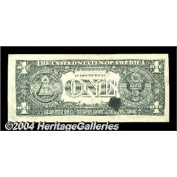Fr. 1910-J $1 1977A Federal Reserve Note. Extremely Fine+. An interesting double error, as the third printing is skewed considerably down and there is a large ink spot of both green and black ink in the body of the note as well. <BR><BR><B>Important notice:</B> Heritage usually auctions material at the rate of 200-250 lots per hour. On some occasions eBay Live bid software or the Internet may not be able to keep up with the pace of the auction. We recommend placing a realistic absentee bid now as insurance to avoid disappointment. Occasionally the auctioneer may eliminate or reject an eBay Live bid, and the auctioneer may also reopen a lot after the close of the eBay live bidding (usually because we missed an audience bid), and may reject your bid even if it shows you as the winning bidder. By bidding via eBay Live, you agree that Heritage may award the lot to another bidder at its sole discretion under the circumstances described above or any other reasonable circumstances. Since eBay bids are not shown to us until we open the lot on the floor, we treat those bids just like floor bids. In most cases the floor responds before the eBay bid is presented to us, due to Internet lag time, so for consistency we have made it a policy that floor bids are always considered first over tie eBay live bids. Also please note that all Heritage lots purchased through eBay Live carry a 20% Buyer's Premium. Please make sure you read the Terms and Conditions before you bid. <BR><BR><B>IMPORTANT ANNOUNCEMENT ABOUT RESERVES:</B> Heritage now divulges all reserves on its web site 7 days before every auction. If you want to know whether the reserve on this lot has been met, and if not, what the reserve amount is, please visit this lot page on the HeritageCoin.com web site, or email: bid@HeritageGalleries.com