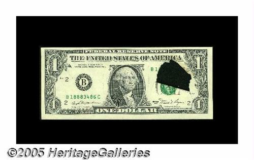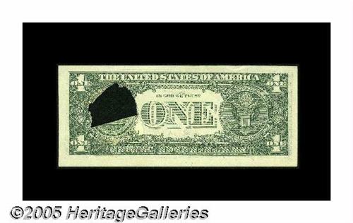 <B>Fr. 1911-B $1 1981 Federal Reserve Note. Choice About Uncirculated.</B></I> A large internal tear before the first printing produced a flap that covered up a portion of the back, leaving a blank space when the flap is folded back.