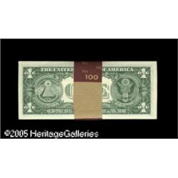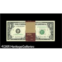 <B>Fr. 1911-G $1 1981 Federal Reserve Notes. Original Pack of 100. Gem Crisp Uncirculated.</B></I><BR>This pack contains the desirable serial number 33333333 note for the G-F block.<BR> 100 notes Lot:15811