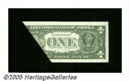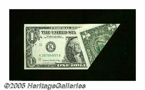 <B>Fr. 1912-K $1 1981A Federal Reserve Note. Gem Crisp Uncirculated.</B></I> A very large foldover with parts of the third printing atop the folded over section.