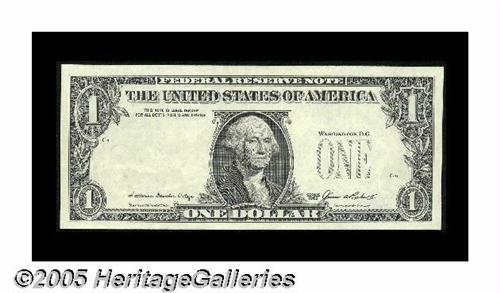<B>Fr. 1913-? $1 1985 Federal Reserve Note. Choice Crisp Uncirculated.</B></I> The third printing is missing, but embossing for the district seal is easily visible.