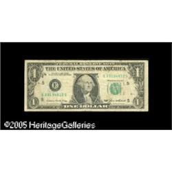 <B>Fr. 1913-B $1 1985 Federal Reserve Note. Fine+.</B></I><BR>This E0/E3 mismatch spent a considerable amount of time in circulation before being spotted and tucked away. Lot:15203