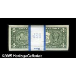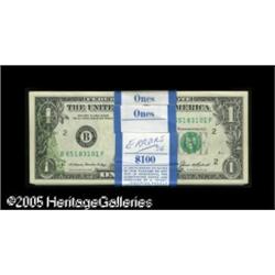 <B>Fr. 1913-B $1 1985 Federal Reserve Notes. Original Pack of 100. Choice Crisp Uncirculated.</B></I><BR>This highly unusual pack contains two errors. The first note has a back to face offset residing along the left-hand edge. Also, the thirteenth note has a dramatic double foldover error in the shape of triangles along the left-hand edge.<BR> 100 notes Lot:15321