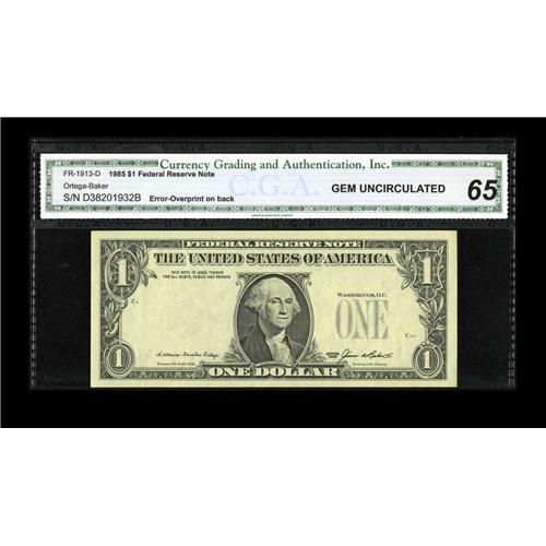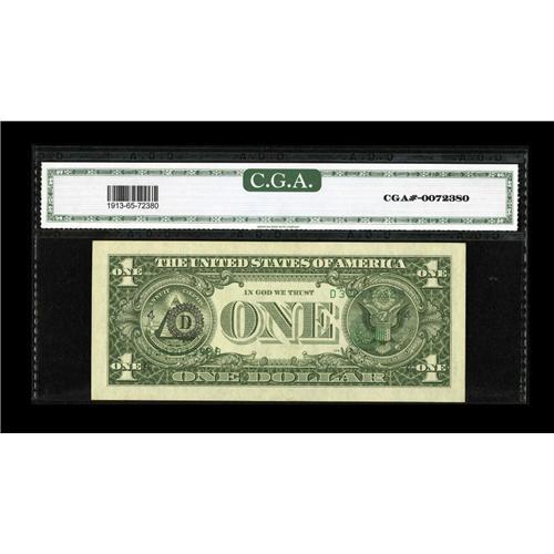 Fr. 1913-D $1 1985 Federal Reserve Note. CGA Gem Uncirc Fr. 1913-D $1 1985 Federal Reserve Note. CGA