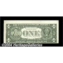 Fr. 1913-G $1 1985 Federal Reserve Note. Gem Crisp Uncirculated. A lovely inverted third printing, along with its associated cutting error. <BR><BR><B>Important notice:</B> Heritage usually auctions material at the rate of 200-250 lots per hour. On some occasions eBay Live bid software or the Internet may not be able to keep up with the pace of the auction. We recommend placing a realistic absentee bid now as insurance to avoid disappointment. Occasionally the auctioneer may eliminate or reject an eBay Live bid, and the auctioneer may also reopen a lot after the close of the eBay live bidding (usually because we missed an audience bid), and may reject your bid even if it shows you as the winning bidder. By bidding via eBay Live, you agree that Heritage may award the lot to another bidder at its sole discretion under the circumstances described above or any other reasonable circumstances. Since eBay bids are not shown to us until we open the lot on the floor, we treat those bids just like floor bids. In most cases the floor responds before the eBay bid is presented to us, due to Internet lag time, so for consistency we have made it a policy that floor bids are always considered first over tie eBay live bids. Also please note that all Heritage lots purchased through eBay Live carry a 20% Buyer's Premium. Please make sure you read the Terms and Conditions before you bid. <BR><BR><B>IMPORTANT ANNOUNCEMENT ABOUT RESERVES:</B> Heritage now divulges all reserves on its web site 7 days before every auction. If you want to know whether the reserve on this lot has been met, and if not, what the reserve amount is, please visit this lot page on the HeritageCoin.com web site, or email: bid@HeritageGalleries.com