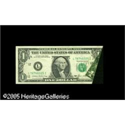 <B>Fr. 1913-L $1 1985 Federal Reserve Note. Extremely Fine.</B></I><BR>The entire right end was folded over during both face printings and folds out into the silhouette of a space shuttle. Lot:15276