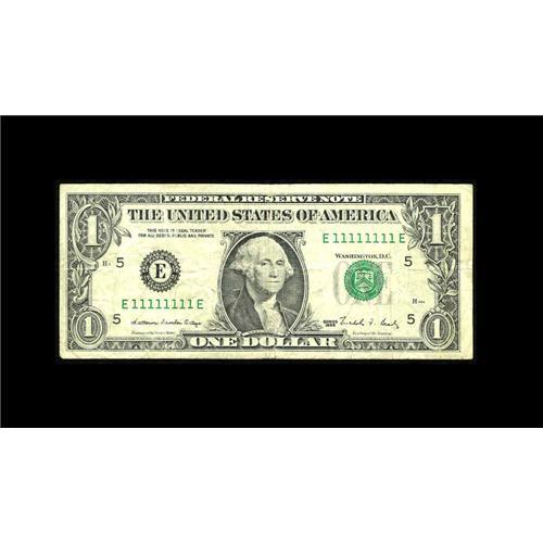 <B>Fr. 1914-E $1 1988 Federal Reserve Note. Fine-Very Fine.</B></I><BR>An evenly circulated and problem free example bearing desirable solid serial numbers E11111111E.