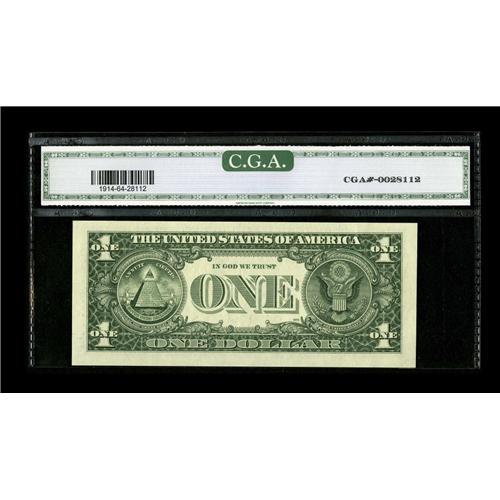<B>Fr. 1914-F* $1 1988 Federal Reserve Note. CGA Choice Uncirculated 64.</B></I><BR>This is one of three near-consecutive pieces in the sale and is just as attractive and original.<BR><BR><b>Shipping:</b> Coin/Currency (<a target="_blank" href="http://www.heritageauctions.com/common/shipping.php">view shipping information</a>)