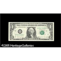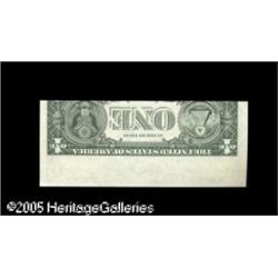 <B>Fr. 1915-B $1 1988A Inverted Reverse Federal Reserve Note About Uncirculated.</B></I> A nice error made even more dramatic since this note was at the bottom of the sheet, resulting in an invert that is about half blank paper and half inverted reverse. Lot:15055