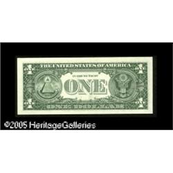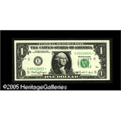 <B>Fr. 1915-E* $1 1988A Federal Reserve Note Gem Crisp Uncirculated.</B></I> A great error, with a dramatic full double first face printing on a star note. These are of course many times more rare than a double printing on a regular note, and will likely see bidding reach if not exceed... Lot:15412