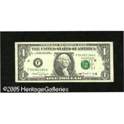 <B>Fr. 1915-F $1 1988A Federal Reserve Note. Very Fine.</B></I> The third printing is shifted somewhat towards the left on the face of this web note. Misprints on web notes are avidly collected within the error fraternity. Lot:15239