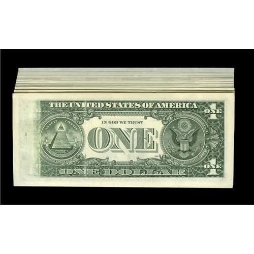 <B>Fr. 1915-F $1 1988A Federal Reserve Notes. Gem Crisp Uncirculated.</B></I> Out of this run of 50 notes, 17 boldly show ink jet failures. Most of the other remaining notes also reveal a clue that something is about to happen.