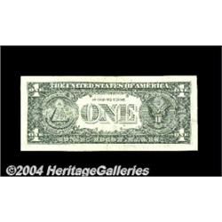Fr. 1915-G $1 1988A Federal Reserve Note. Extremely Fine. The ultimate in shifted third printing errors, as this note has it all, from the left side with the third printing shifted down to the right side which has a broken seal and serial numbers everywhere. This is one we've not seen previously. <BR><BR><B>Important notice:</B> Heritage usually auctions material at the rate of 200-250 lots per hour. On some occasions eBay Live bid software or the Internet may not be able to keep up with the pace of the auction. We recommend placing a realistic absentee bid now as insurance to avoid disappointment. Occasionally the auctioneer may eliminate or reject an eBay Live bid, and the auctioneer may also reopen a lot after the close of the eBay live bidding (usually because we missed an audience bid), and may reject your bid even if it shows you as the winning bidder. By bidding via eBay Live, you agree that Heritage may award the lot to another bidder at its sole discretion under the circumstances described above or any other reasonable circumstances. Since eBay bids are not shown to us until we open the lot on the floor, we treat those bids just like floor bids. In most cases the floor responds before the eBay bid is presented to us, due to Internet lag time, so for consistency we have made it a policy that floor bids are always considered first over tie eBay live bids. Also please note that all Heritage lots purchased through eBay Live carry a 20% Buyer's Premium. Please make sure you read the Terms and Conditions before you bid. <BR><BR><B>IMPORTANT ANNOUNCEMENT ABOUT RESERVES:</B> Heritage now divulges all reserves on its web site 7 days before every auction. If you want to know whether the reserve on this lot has been met, and if not, what the reserve amount is, please visit this lot page on the HeritageCoin.com web site, or email: bid@HeritageGalleries.com