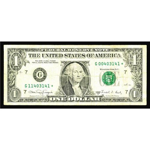 Fr. 1916-G* $1 1988A FRN Star. Fine. Mismatch Serial # Fr. 1916-G* $1 1988A Federal Reserve Note. Fi