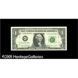 <B>Fr. 1916-G $1 1988A Federal Reserve Note. Gem Crisp Uncirculated.</B></I><BR>An excessively rare two-digit Star mismatch G11409790*/G00409790* that will most certainly bring some serious bids before realizing somewhere around. Lot:15205