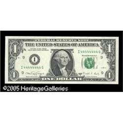 <B>Fr. 1916-I $1 1988A Federal Reserve Note. Superb Gem Crisp Uncirculated.</B></I><BR>Solid serial I44444444G. This is a grade we rarely utilize for small size notes, but the appellation is quite clearly well deserved by this example from the Fort Worth facility with hugely wide boardwalk margins. An ideal candidate for third party encapsulation. Lot:15851