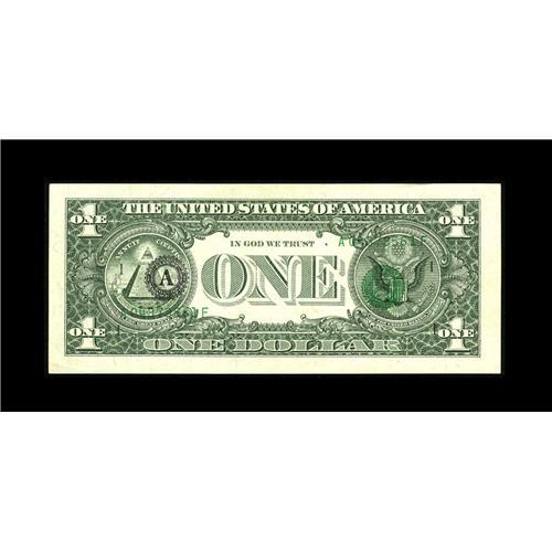 <B>Fr. 1917-A $1 1988A Web Federal Reserve Note. About Uncirculated.</B></I><BR>This A-F block plate combination 5/4 run 1 web note has its third printing on the back. This is the first time for us to have this type of error on a web note. Light circulation is observed that includes corner folds. Only five examples for this run are known. Not your typical error of this type encountered.<BR><BR><b>Shipping:</b> Coin/Currency (<a target="_blank" href="http://www.heritageauctions.com/common/shipping.php">view shipping information</a>)