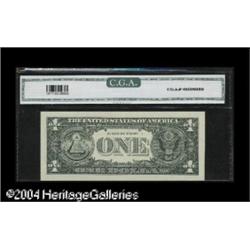 Fr. 1917-F* $1 1988A Federal Reserve Note. CGA Gem Un <B>Fr. 1917-F* $1 1988A Federal Reserve Note. CGA Gem Uncirculated 65.</B></I><BR>A lovely example of the much in demand 1988A Atlanta web star note, the sole district to issue web star examples. It's been encapsulated by CGA, earning the grade Gem Uncirculated 65. <BR><BR><B>Important notice:</B> Heritage usually auctions material at the rate of 200-250 lots per hour. On some occasions eBay Live bid software or the Internet may not be able to keep up with the pace of the auction. We recommend placing a realistic absentee bid now as insurance to avoid disappointment. Occasionally the auctioneer may eliminate or reject an eBay Live bid, and the auctioneer may also reopen a lot after the close of the eBay live bidding (usually because we missed an audience bid), and may reject your bid even if it shows you as the winning bidder. By bidding via eBay Live, you agree that Heritage may award the lot to another bidder at its sole discretion under the circumstances described above or any other reasonable circumstances. Since eBay bids are not shown to us until we open the lot on the floor, we treat those bids just like floor bids. In most cases the floor responds before the eBay bid is presented to us, due to Internet lag time, so for consistency we have made it a policy that floor bids are always considered first over tie eBay live bids. Also please note that all Heritage lots purchased through eBay Live carry a 20% Buyer's Premium. Please make sure you read the Terms and Conditions before you bid. This lot is being auctioned in conjunction with a live floor auction by Heritage Galleries & Auctioneers. All final auction and invoice information will be supplied by Heritage Galleries & Auctioneers, and all other information should be considered preliminary. Lot:16328