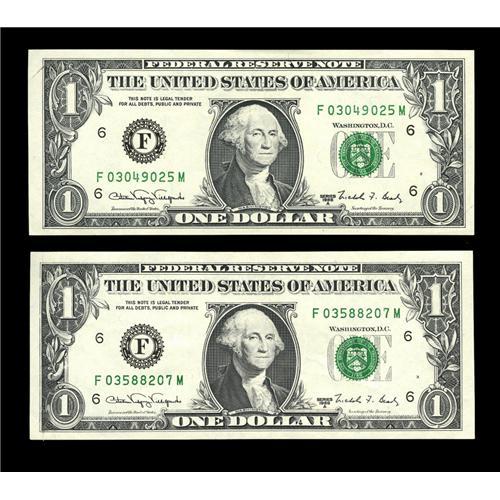 Fr. 1917-F $1 1988A Federal Reserve Web Notes.Two Examp Fr. 1917-F $1 1988A Federal Reserve Web Note