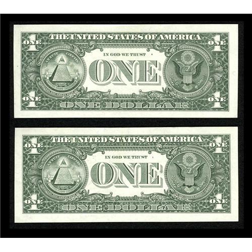 <B>Fr. 1917-F $1 1988A Federal Reserve Web Notes.Two Examples.</B></I><BR>This pair of notes consists of a 2/2 combo in <B>CU</B></I> and a 3/1 Combo in <B>CH AU.</B></I><BR>