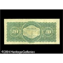 Fr. 191a $20 1864 Compound Interest Treasury Note Cho <B>Fr. 191a $20 1864 Compound Interest Treasury Note Choice Very Fine.</B></I> Authorized under the act of June 30, 1864 and issued on December 15, 1864, this solid, problem-free note has not a hint of a defect or restoration. It's far brighter than one would expect for the grade and quite well margined. The bronze overprint has darkened somewhat but has not even begun to crack the paper, as so often happens on this type. Fr. 191a is the most available of the $20 "middle of the book" Interest Bearing and Compound Interest Notes, but most of the notes seen are considerably inferior to this piece, both in technical grade and due to heavy restoration. The eye appeal of this note, combined with its technical merits and rarity, should produce a realization near the five-figure level.<BR><I>From the collection of Malcolm A. Trask.</B></I> <BR><BR><B>Important notice:</B> Heritage usually auctions material at the rate of 200-250 lots per hour. On some occasions eBay Live bid software or the Internet may not be able to keep up with the pace of the auction. We recommend placing a realistic absentee bid now as insurance to avoid disappointment. Occasionally the auctioneer may eliminate or reject an eBay Live bid, and the auctioneer may also reopen a lot after the close of the eBay live bidding (usually because we missed an audience bid), and may reject your bid even if it shows you as the winning bidder. By bidding via eBay Live, you agree that Heritage may award the lot to another bidder at its sole discretion under the circumstances described above or any other reasonable circumstances. Since eBay bids are not shown to us until we open the lot on the floor, we treat those bids just like floor bids. In most cases the floor responds before the eBay bid is presented to us, due to Internet lag time, so for consistency we have made it a policy that floor bids are always considered first over tie eBay live bids. Also please note that all Heritage lots purchased through eBay Live carry a 20% Buyer's Premium. Please make sure you read the Terms and Conditions before you bid. This lot is being auctioned in conjunction with a live floor auction by Heritage Galleries & Auctioneers. All final auction and invoice information will be supplied by Heritage Galleries & Auctioneers, and all other information should be considered preliminary. Lot:17052
