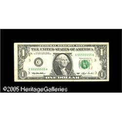 <B>Fr. 1920-C $1 1993 Federal Reserve Note. Fine.</B></I><BR>A solid serial web note, C55555555A, in a circulated but still quite attractive condition. Lot:15852