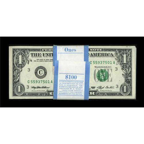 <B>Fr. 1920-C $1 1993 Web Federal Reserve Notes. Original Pack of 100. Gem Crisp Uncirculated</B></I>.<B></B></I><BR> These well margined beauties are from the short run of these for the series. This is the first time we have offered a fresh pack of C-A Block Run 9, 1/9 Combo notes before.<BR><BR><b>Shipping:</b> Coins & Currency (<a target="_blank" href="http://www.heritageauctions.com/common/shipping.php">view shipping information</a>)