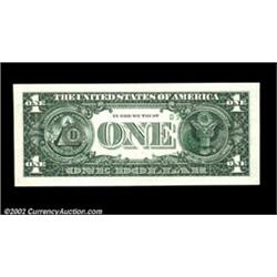 Fr. 1921-D $1 1995 Federal Reserve Note. Choice About Uncirculated. Third printing on reverse. Important notice: We expect to be auctioning lots at the rate of 200-250 per hour. Sometimes eBay Premier live bid software cannot keep up with that pace, so we strongly recommend that you place a realistic proxy bid now as insurance to avoid disappointment. Also please note that all Heritage/CAA lots purchased through eBay Premier carry a 20% Buyer's Premium. Please make sure you read the Terms and Conditions.