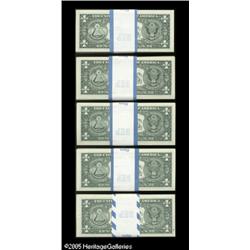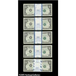 <B>Fr. 1921-E $1 1995 Federal Reserve Notes. Four Original Packs of 100. Gem Crisp Uncirculated.</B></I><BR><B>Fr. 1921-E* $1 1995 Federal Reserve Notes. Original Pack of 100. Gem Crisp Uncirculated.</B></I><BR>One of the Cleveland packs in this lot was printed at the Western Currency Facility. Also, the E-A pack is missing one note, and it has been replaced with a San Fran $1.<BR> 500 notes Lot:15822