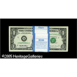 <B>Fr. 1923-A $1 1995 Federal Reserve Web Notes. Original Pack of 100. Gem Crisp Uncirculated.</B></I><BR>This attractive pack of A-C webs is from plate combination 1/9, run 1.<BR> 100 notes Lot:15837