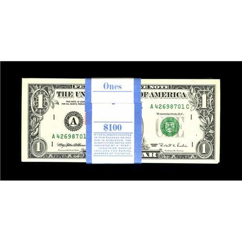 <B>Fr. 1923-A $1 1995 Web Federal Reserve Notes. Original Pack of 100. Gem Crisp Uncirculated.</B></I><BR>This is another gem A-C block web pack. These notes carry plate combination 1/10 and are from run 7. They also catalogue for $15 each in the Kvederas tome. Yet another pack which is quite scarce these days.<BR><BR><b>Shipping:</b> Coin/Currency (<a target="_blank" href="http://www.heritageauctions.com/common/shipping.php">view shipping information</a>)