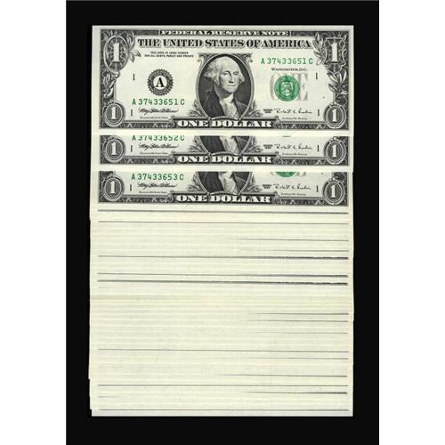 <B>Fr. 1923-A $1 1995 Web Federal Reserve Notes. Thirty-nine Consecutive Examples. Gem Crisp Uncirculated.</B></I><BR> These notes start where the previous lot ended.<BR><I>From The Drew Keough Collection</B></I><BR><BR><b>Shipping:</b> Coins & Currency (<a target="_blank" href="http://www.heritageauctions.com/common/shipping.php">view shipping information</a>)