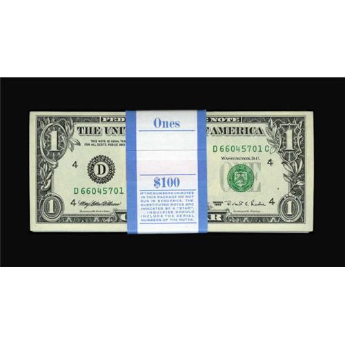<B>Fr. 1923-D $1 1995 Web Federal Reserve Notes. Original Pack of 100. Gem Crisp Uncirculated.</B></I><BR> Three extra wide margins are found on the well preserved Web notes in this pack. These are from Run 11 with a plate combination of 2/9. These are listed at $20 per note in the Azpiazu reference.<BR><I>From The Drew Keough Collection</B></I><BR><BR><b>Shipping:</b> Coins & Currency (<a target="_blank" href="http://www.heritageauctions.com/common/shipping.php">view shipping information</a>)